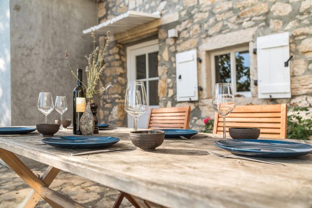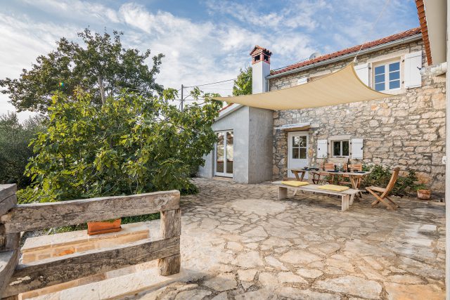 The natural building material in the 19th century all around the Mediterranean sea was stone. So Croatia makes here no exception to find these typical stone houses. This one was 2018 enlarged with two modern wings and a heated pool.